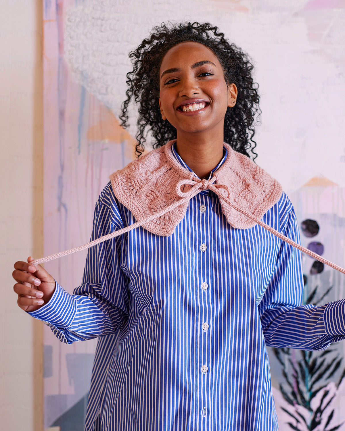 Kukkaniitty Peter Pan collar is a delightful accessory for various outfits. The yoke features a fun lace pattern.