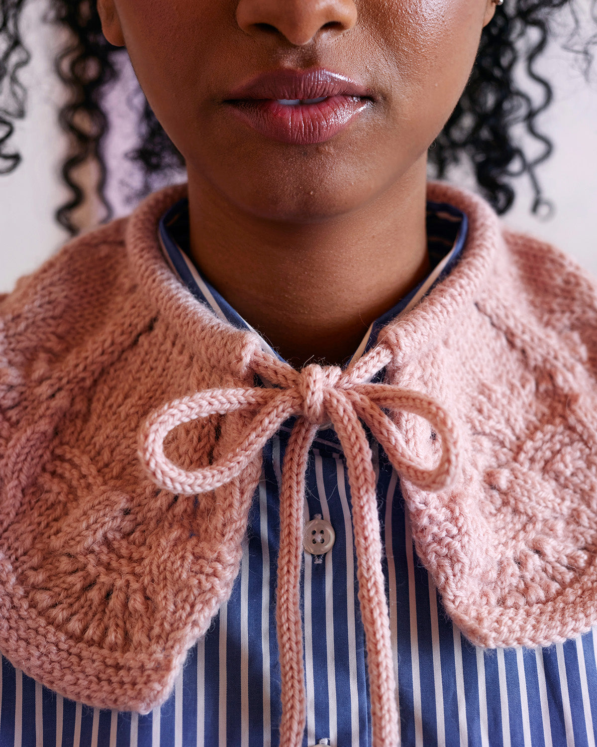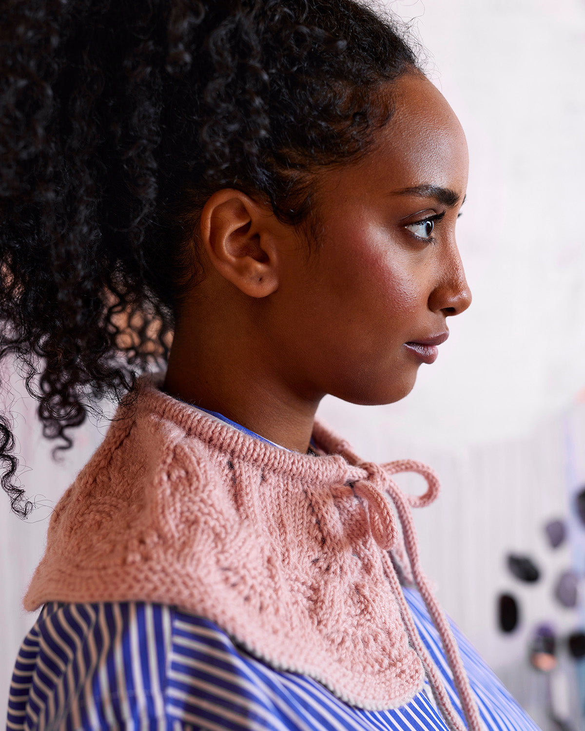 The pattern for the Kukkaniitty collar was previously published in Beloved Patterns & Aarikka knitting magazine, where the inspiration came from Aarikka's jewelry, textiles, and home decor items.