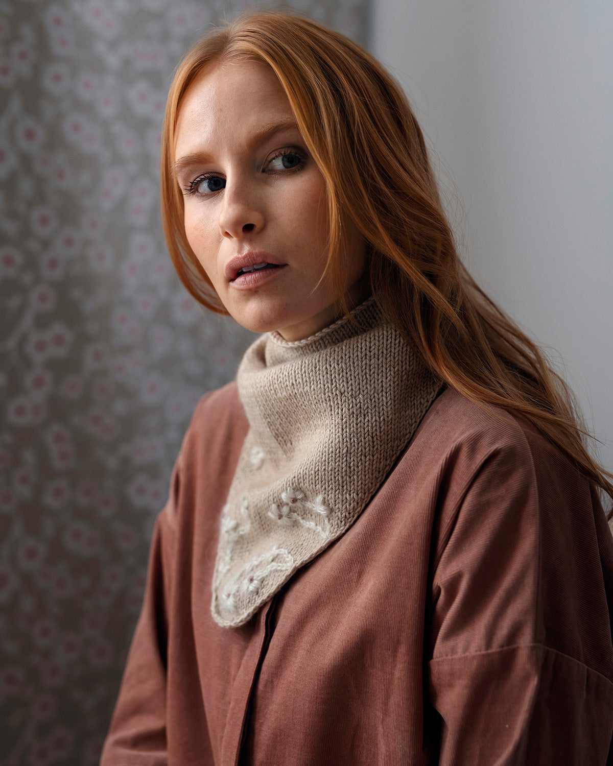 The pattern for the Kirsikkapuu shawlette was previously published in Beloved Patterns & Pihlgren and Ritola knitting magazine, where the inspiration came from Pihlgren and Ritola's iconic wallpaper patterns.