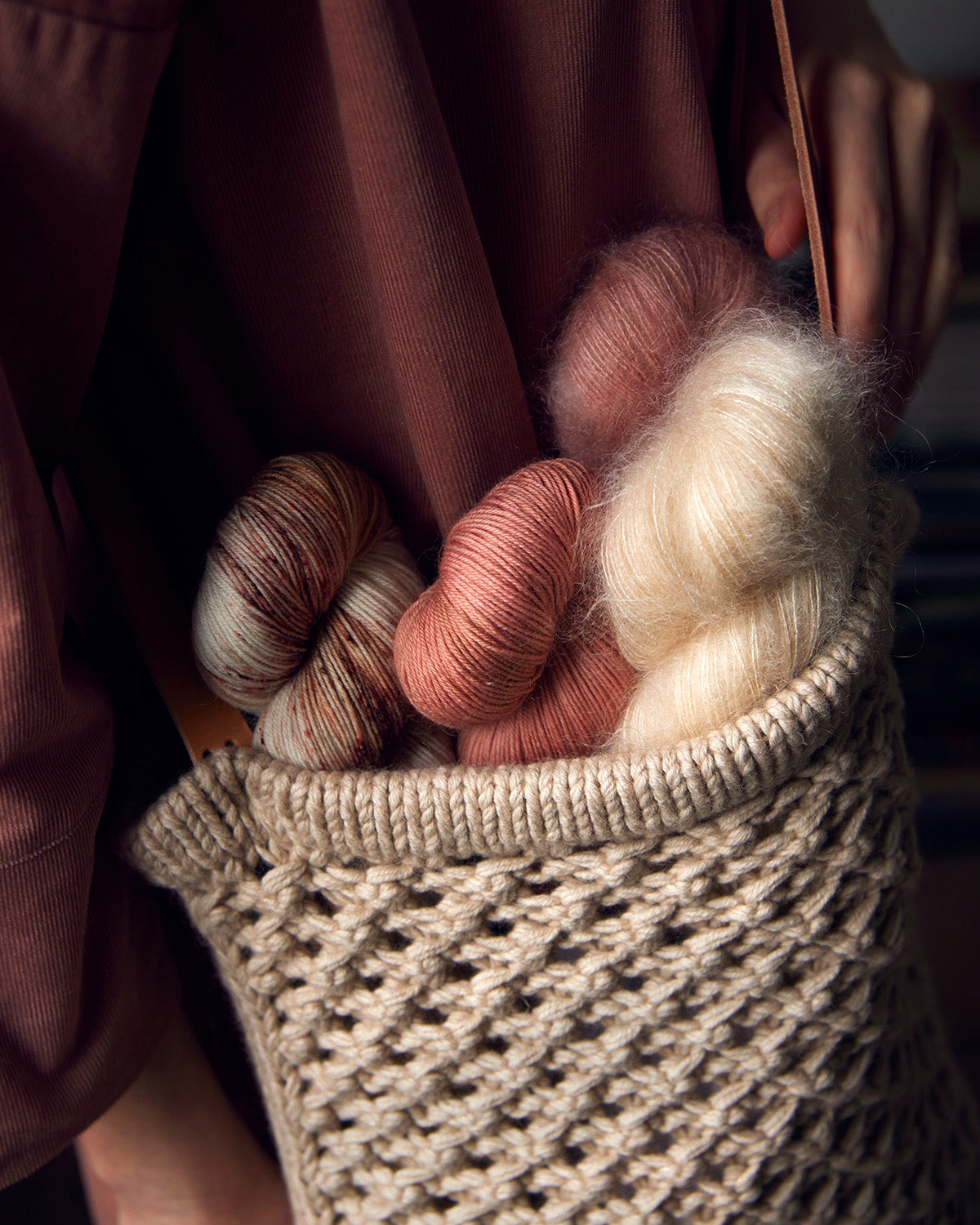 The pattern for the Kirsikkapuu shoulder bag was previously published in Beloved Patterns & Pihlgren and Ritola knitting magazine, where the inspiration came from Pihlgren and Ritola's iconic wallpaper patterns.