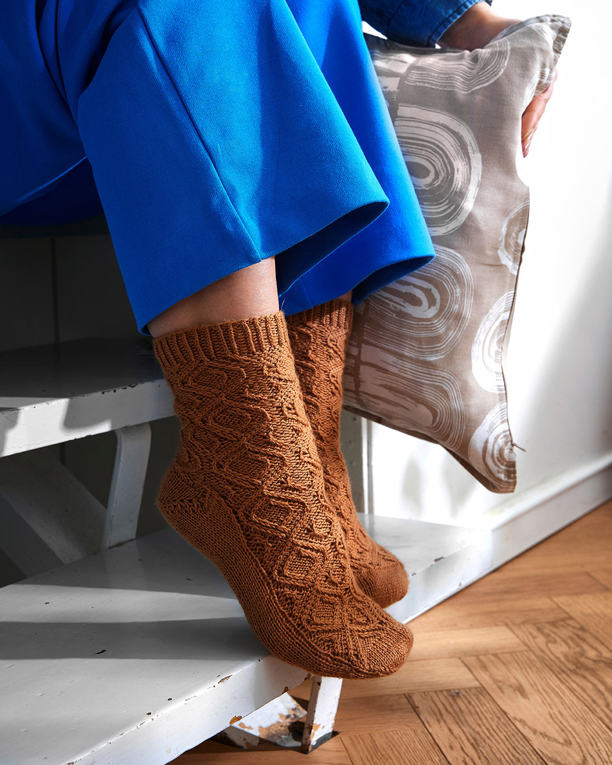 The pattern for the Kaarna socks was previously published in Beloved Patterns & Pentik knitting magazine, where the inspiration came from Pentik's decorative textiles and ceramics.