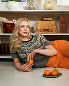 The pattern for the Pioni sweater was previously published in Beloved Patterns & Pentik knitting magazine, where the inspiration came from Pentik's decorative textiles and ceramics.