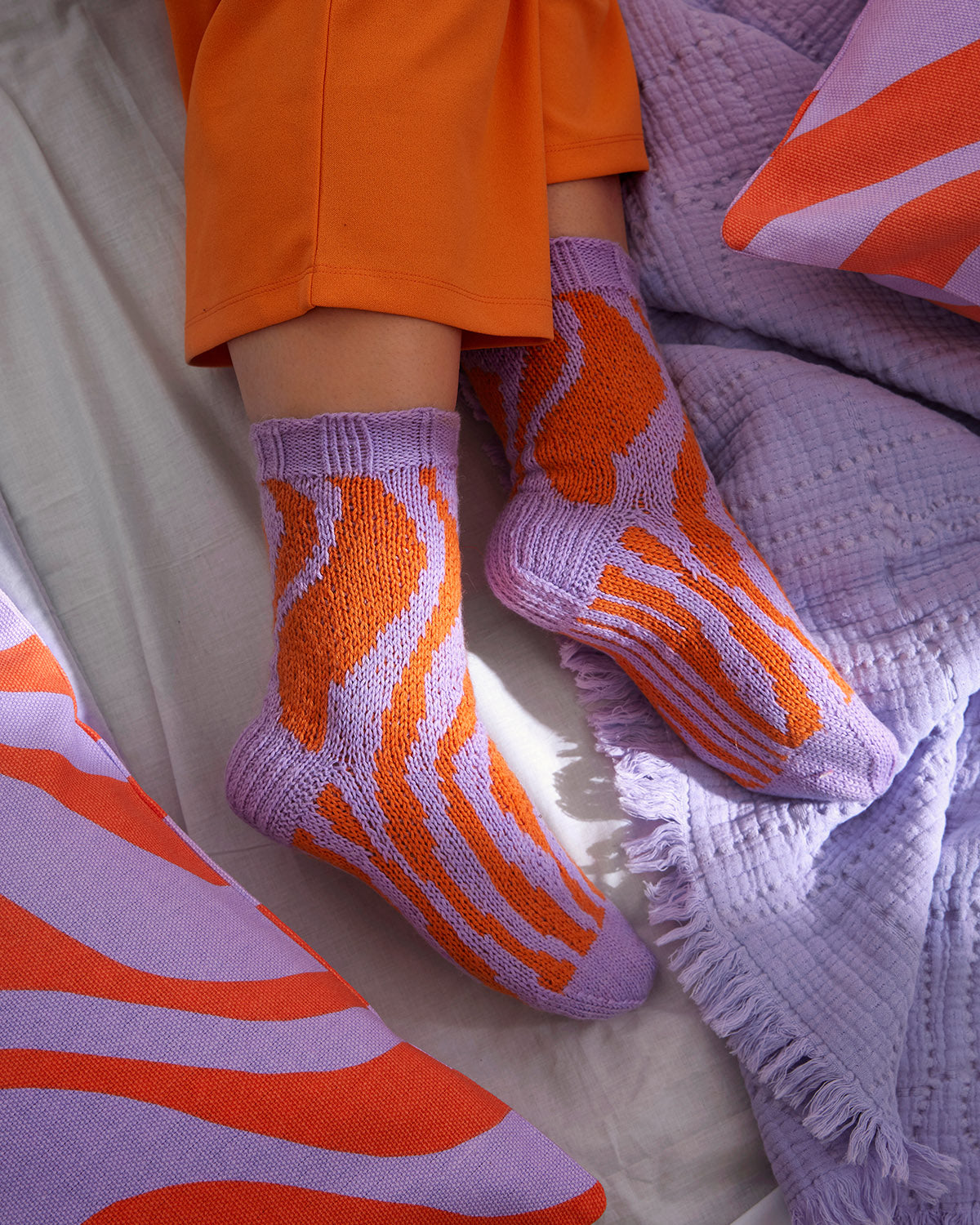 The pattern for the Hiekka socks was previously published in Beloved Patterns & Pentik knitting magazine, where the inspiration came from Pentik's decorative textiles and ceramics.