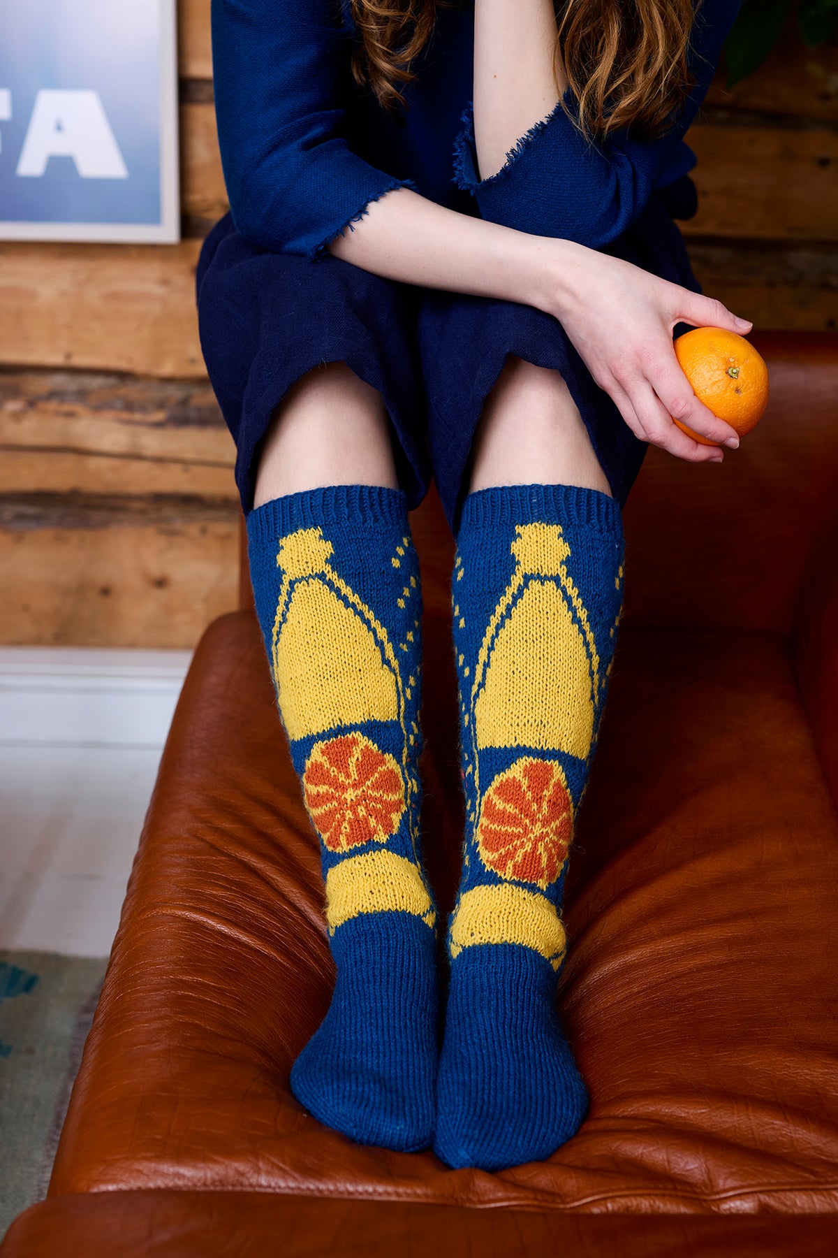 The Jaffa socks pattern was first published in the Beloved Patterns & Erik Bruun knitting magazine, inspired by Finnish graphic designer Erik Bruun’s iconic posters.