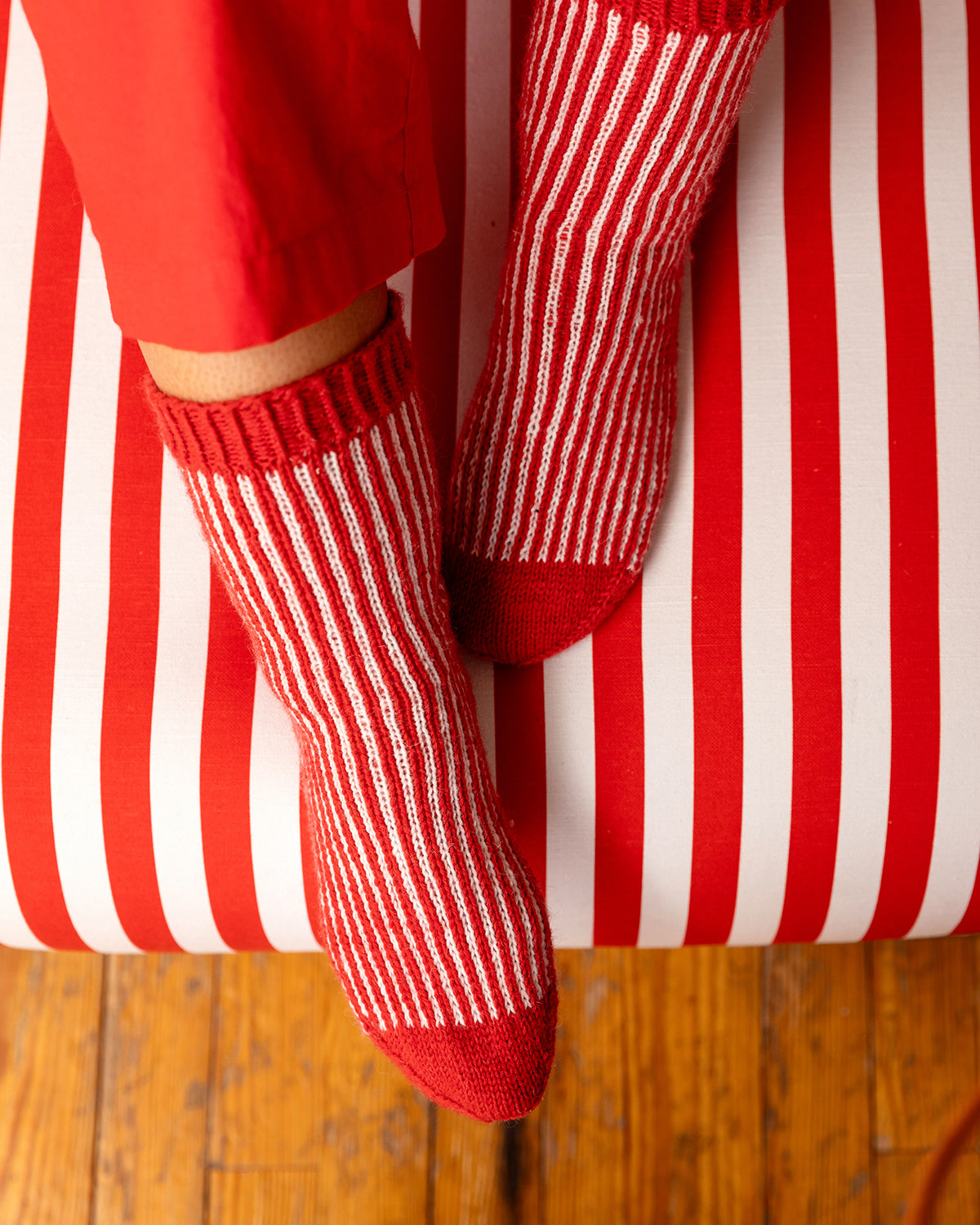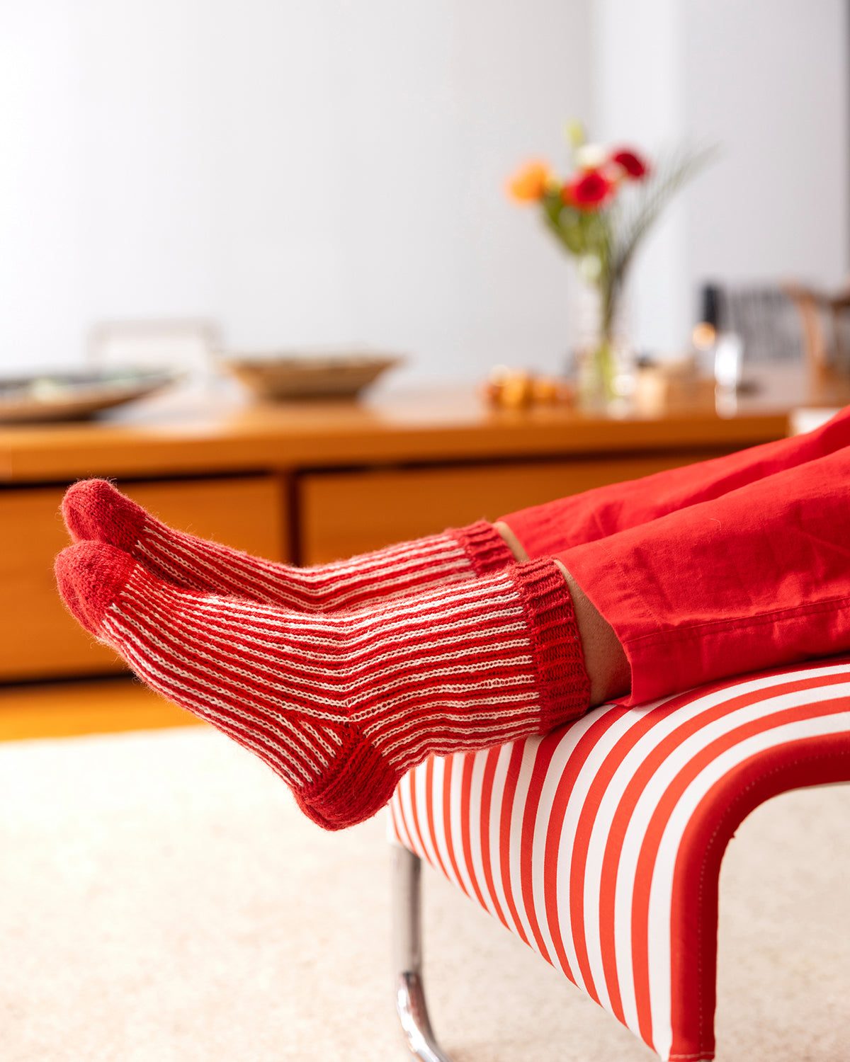 The pattern for the Miniraita socks was previously published in Beloved Patterns & Vuokko knitting magazine, where the inspiration came from Vuokko’s stunning, timeless prints.
