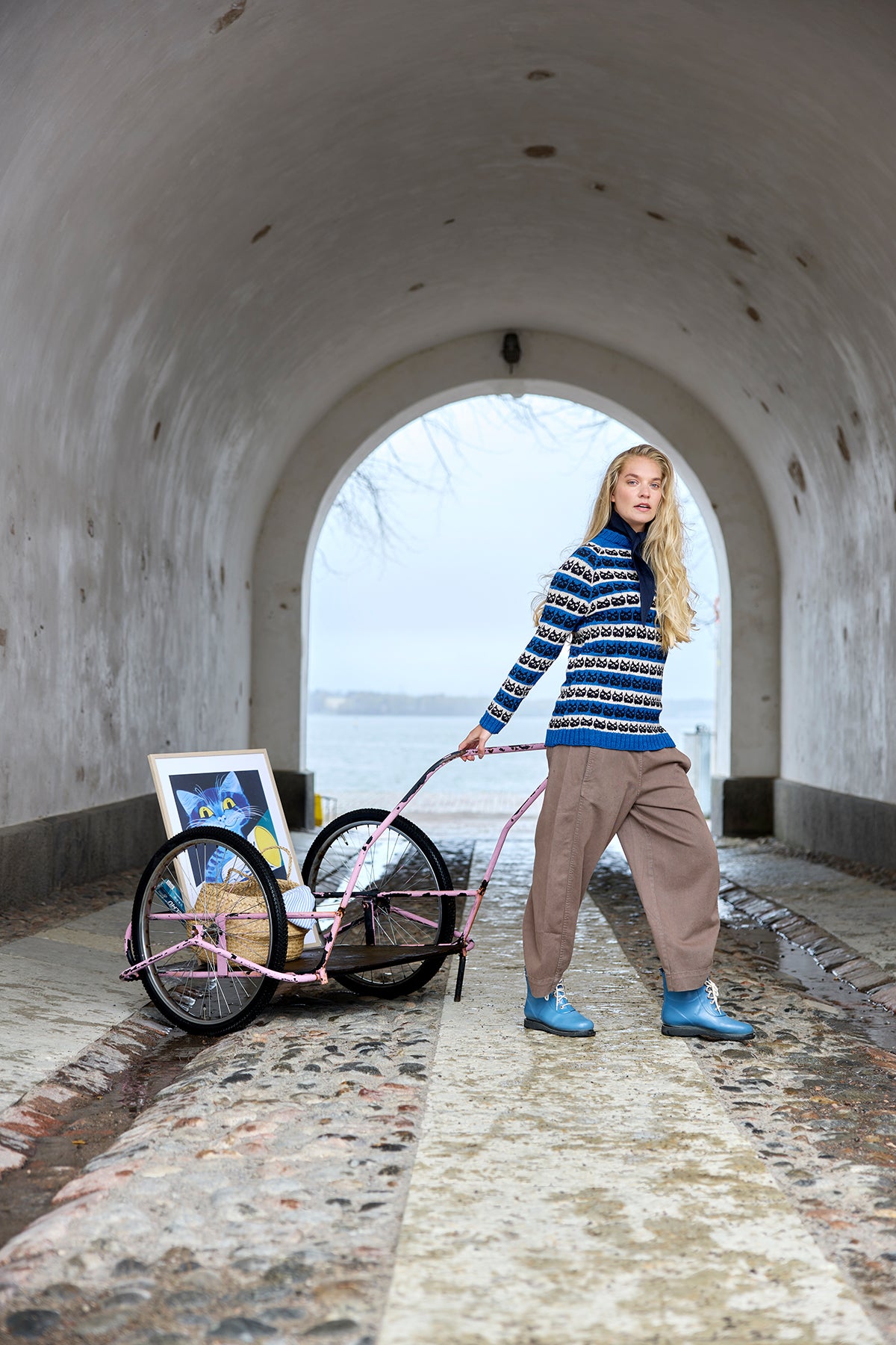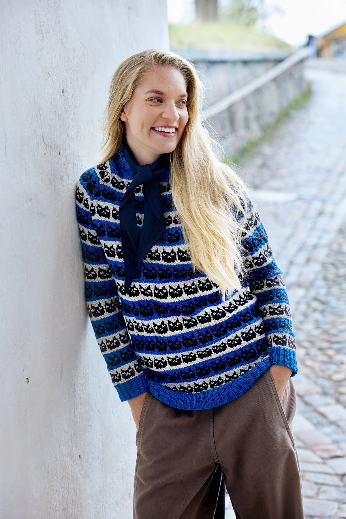 The Kissa sweater pattern was first published in the Beloved Patterns & Erik Bruun knitting magazine, inspired by Finnish graphic designer Erik Bruun’s iconic posters.