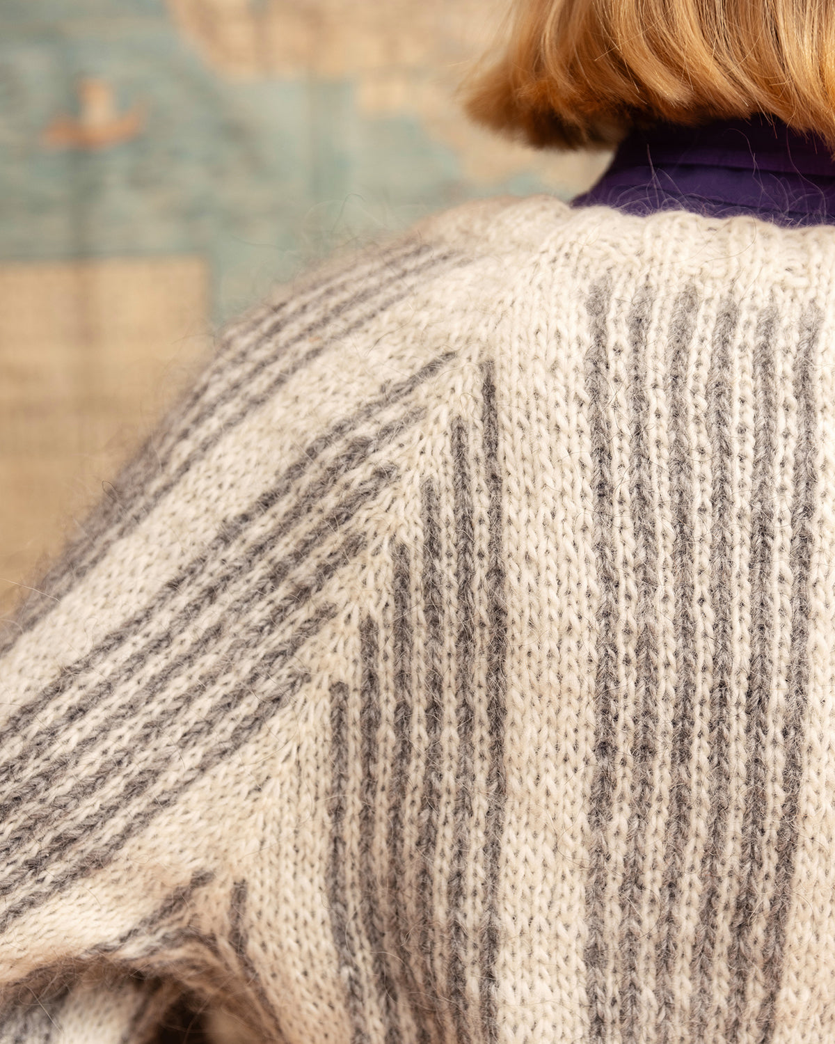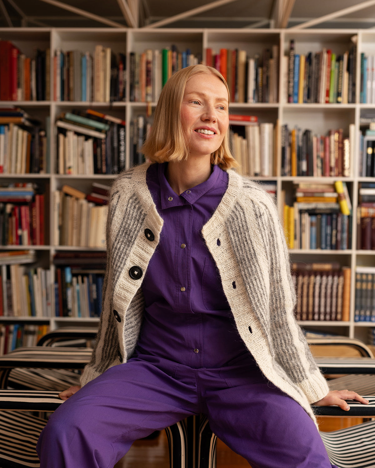 The pattern for the Pystyraita cardigan was previously published in Beloved Patterns & Vuokko knitting magazine, where the inspiration came from Vuokko’s stunning, timeless prints.